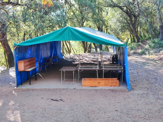 És un terreny d’acampada proper a la casa de colònies de Can Massaguer, amb una capacitat total de 42 places. Està completament equipat amb 6 tendes de 6 places, una tenda per a monitors/es de 6 places i lavabos i dutxes amb aigua calenta. Les tendes estan repartides en diferents feixes de prat i envoltades d’un bosc centenari d’alzina surera i roures que fan ombra a l’estiu.