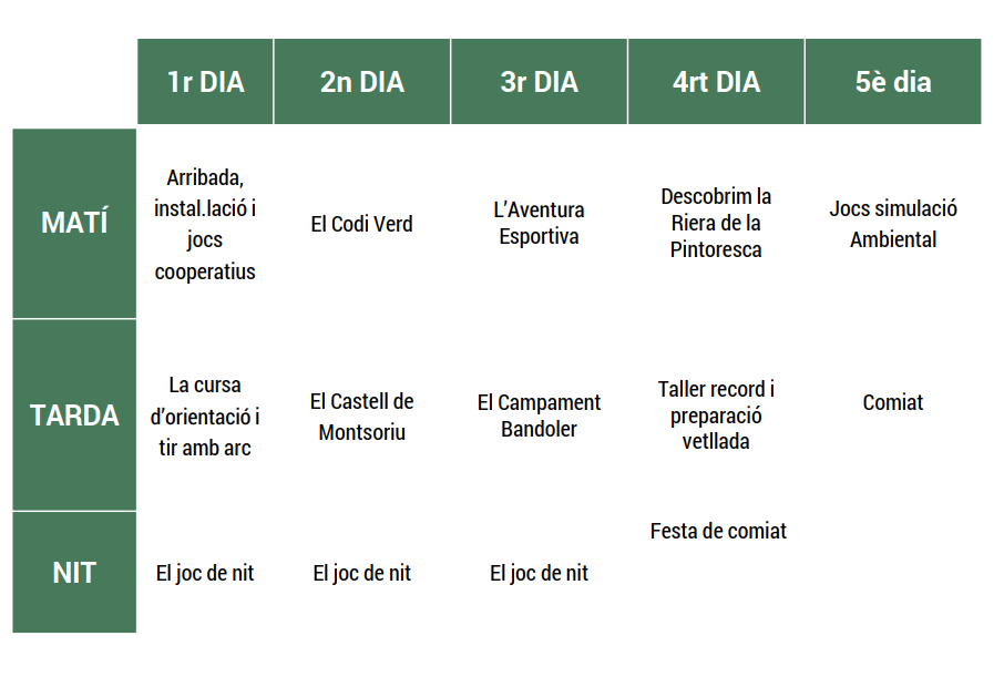 Tant en aquests espais com en les activitats de natura, el joc és el mitjà pel qual ens acostem a noves descobertes i nous reptes que faran d'aquests dies una experiència única de convivència, amistat, estima per la natura i autonomia.
